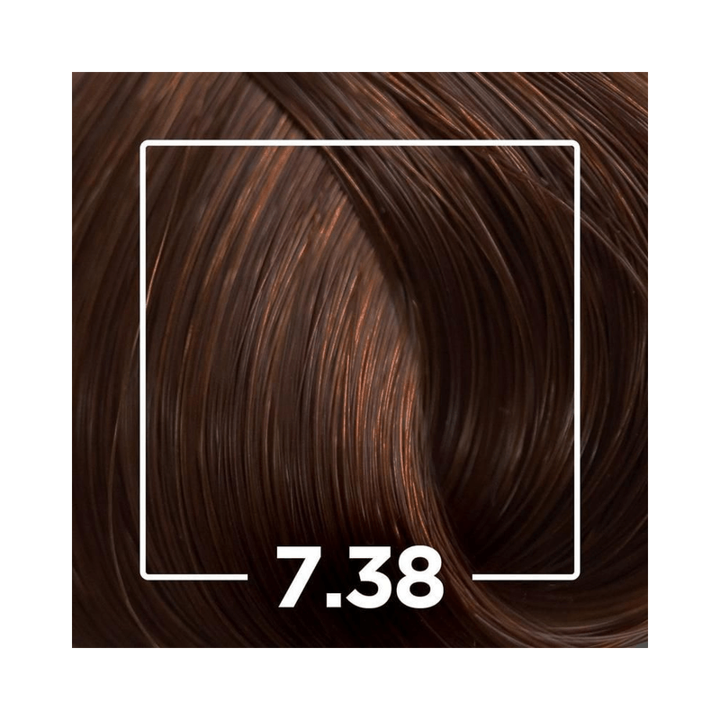 Coloração permanente Keune 7.38 Louro Médio Avela com baixa amônia, oferece cobertura completa dos fios brancos e cor vibrante por até 20 lavagens. Fórmula enriquecida com proteínas da seda e Cocamida MEA que condicionam durante a aplicação, deixando os cabelos macios, brilhantes e com aspecto sedoso.