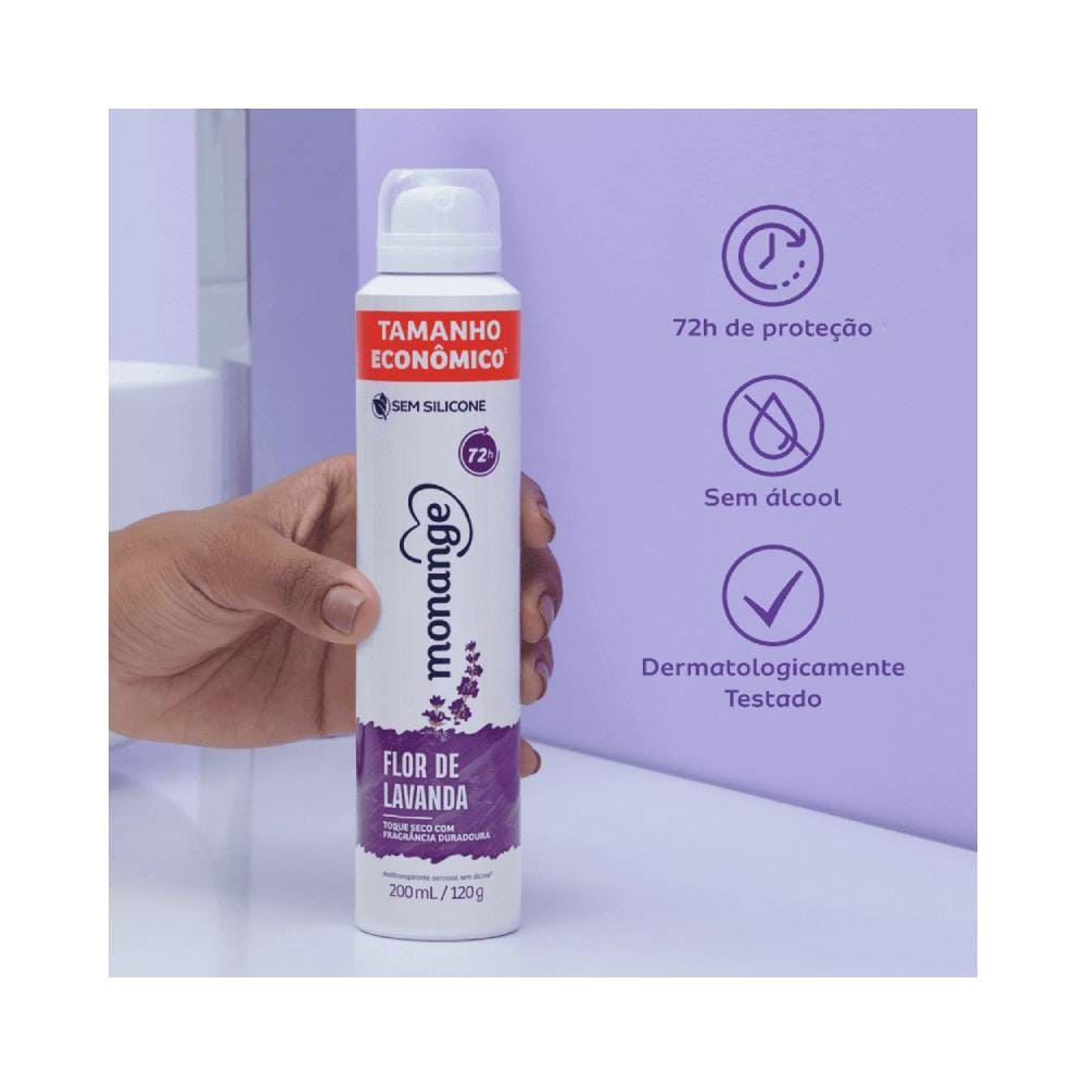Proteção antitranspirante por até 72 horas com fragrância suave de flor de lavanda. Fórmula sem álcool e sem silicone, ideal para peles sensíveis, que hidrata com extrato de lavanda e oferece toque seco e conforto prolongado. Tamanho econômico de 200ml.