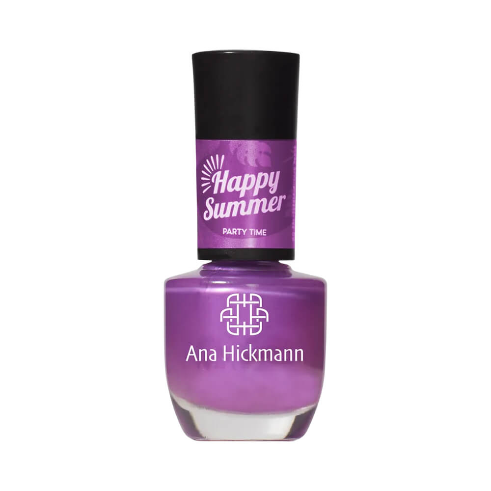 Roxo cintilante e vibrante com acabamento brilhante, o esmalte Ana Hickmann Happy Summer Party Time oferece cor intensa, secagem rápida e aplicação uniforme. Fórmula cremosa e vegan friendly que facilita a cobertura e garante unhas com visual festivo e longa duração.