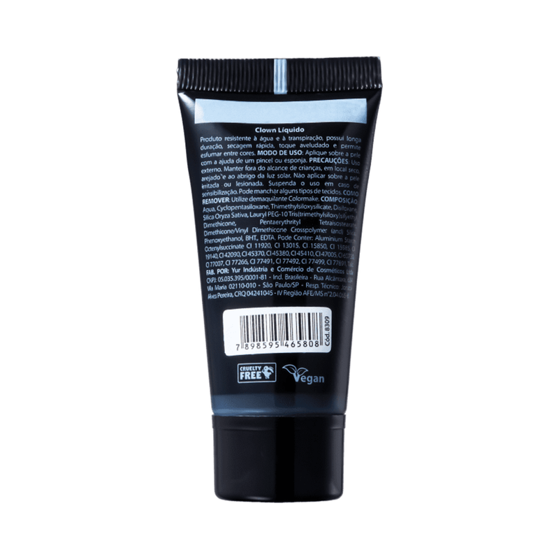 Maquiagem Artística Clown Líquido ColorMake Preto 30ml - verso com instruções Embalagem prática em tubo com dosagem controlada e rótulo com instruções