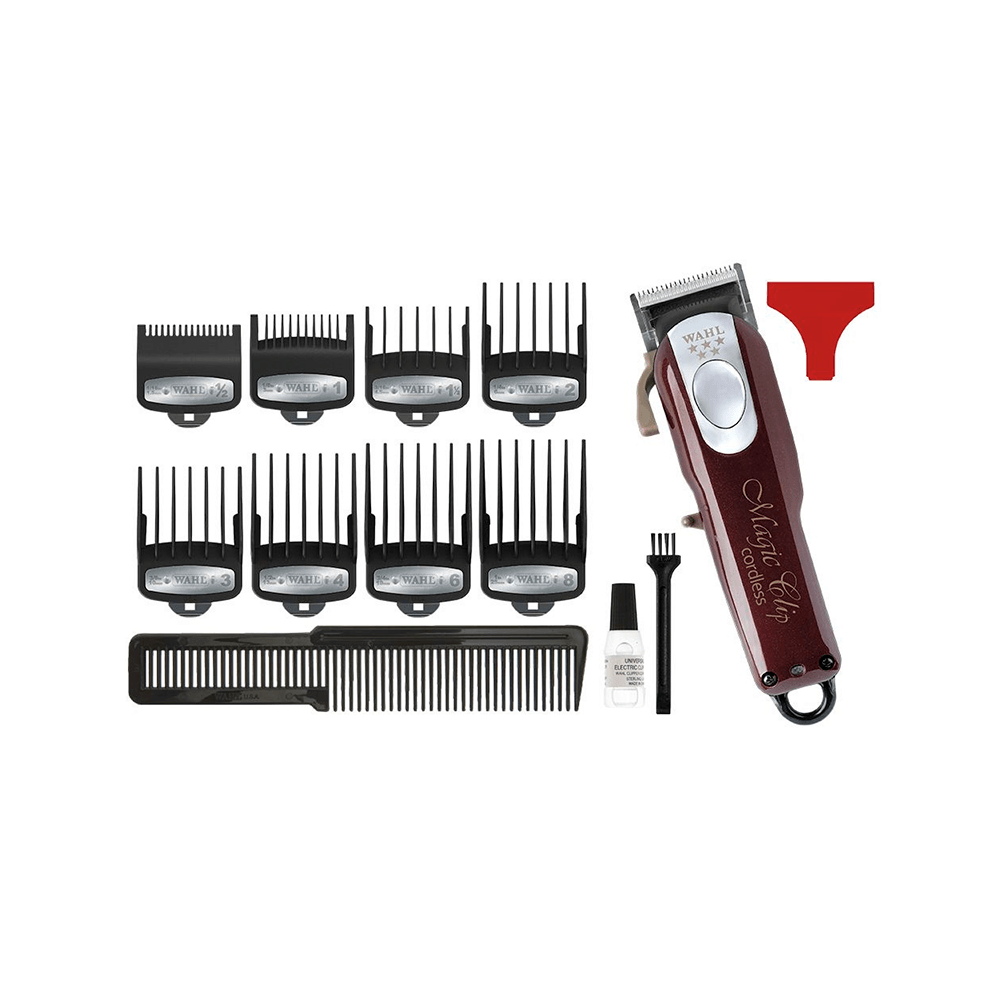 A Wahl Magic Clip Cordless oferece cortes profissionais com liberdade sem fio, bateria Li-ion de 90 minutos e lâminas em aço inox para acabamento preciso. Design ergonômico e acessórios completos para manutenção e versatilidade em vários comprimentos.