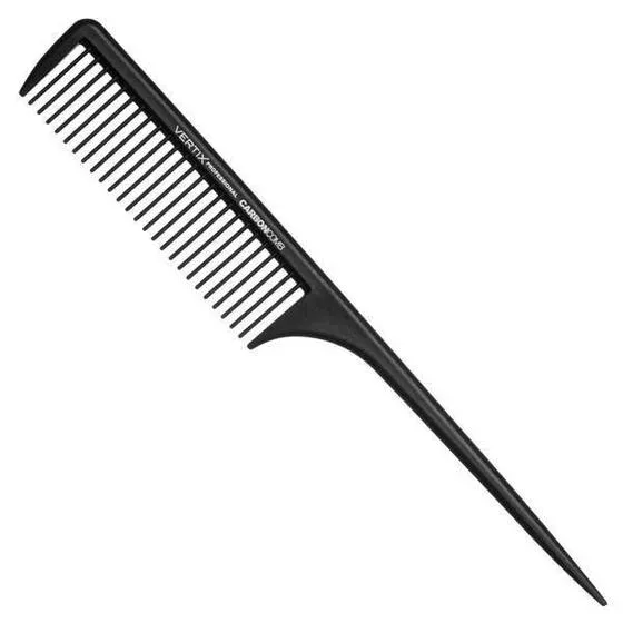 Pente profissional em fibra de carbono projetado para precisão em cabelos finos. Leve, ergonômico e resistente ao calor, oferece manuseio confortável e ação antiestática para reduzir o frizz e facilitar cortes, separações e finalizações com ferramentas térmicas.