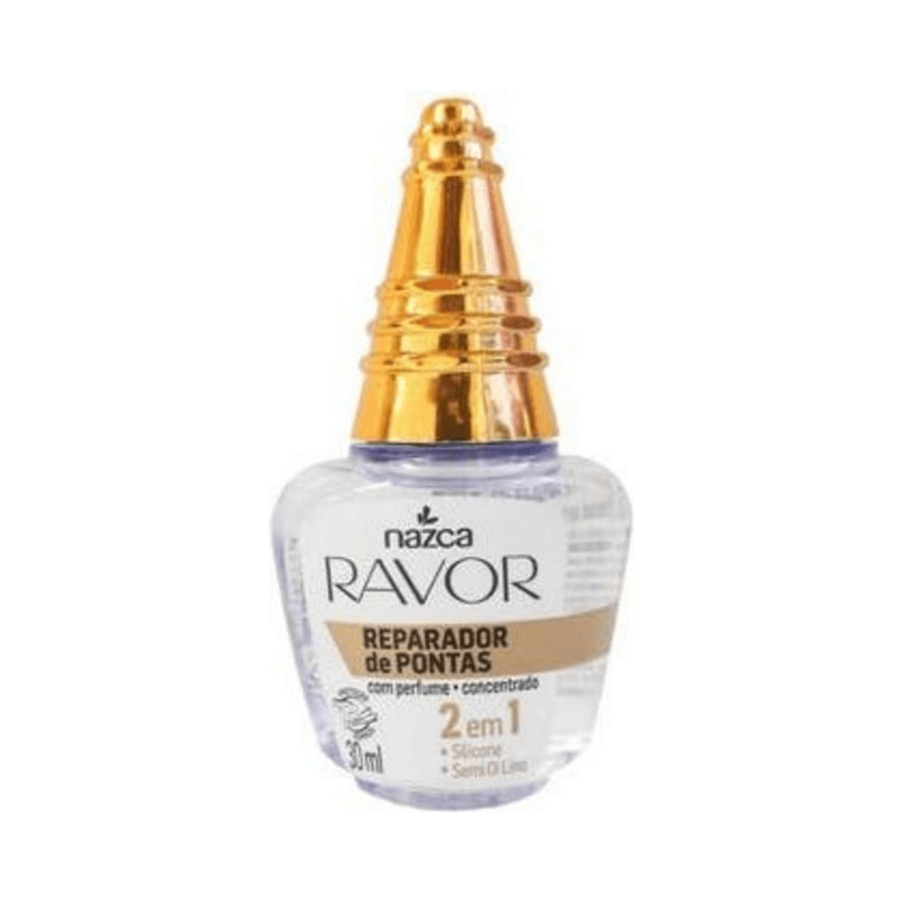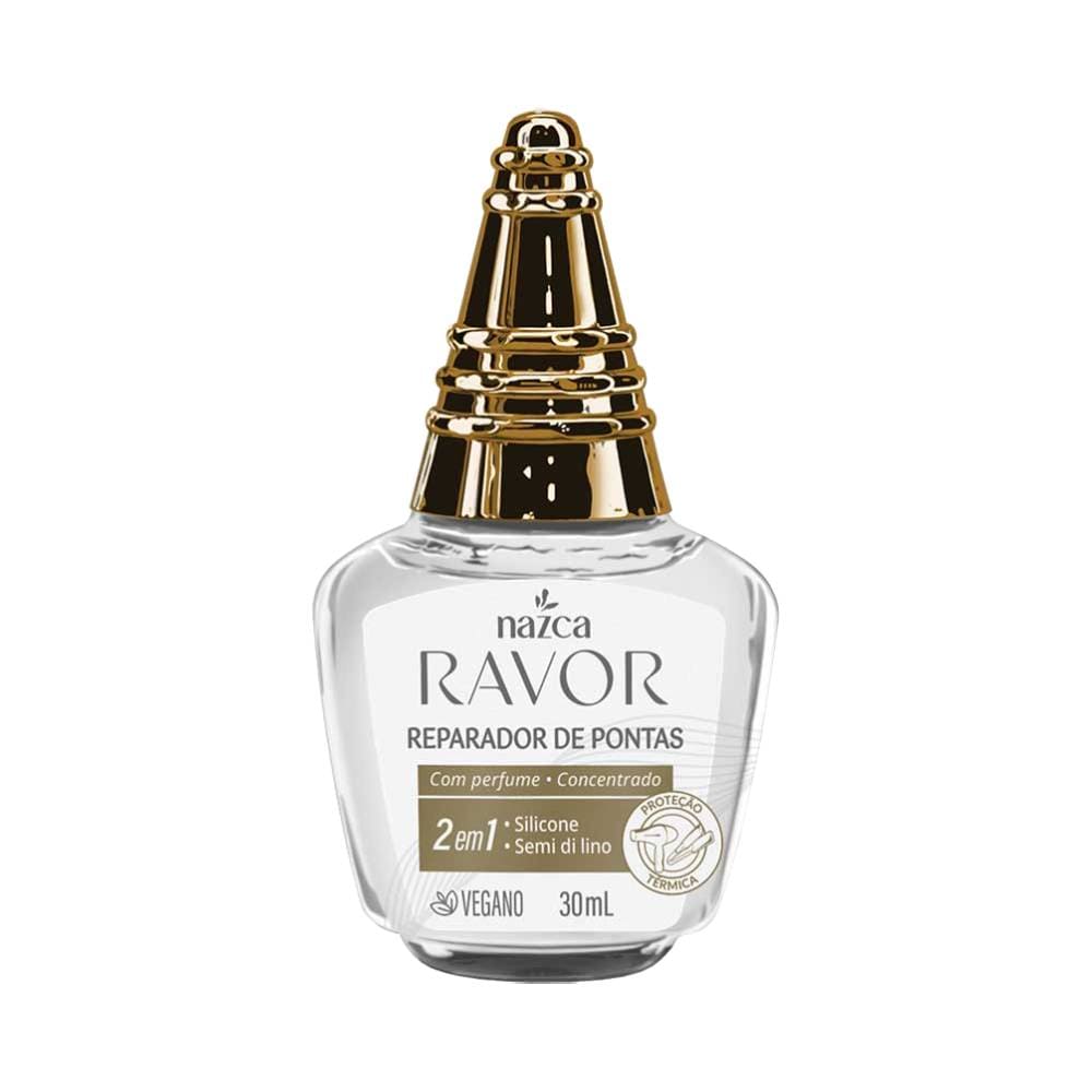 Reparador de pontas Nazca Ravor 30ml: fórmula concentrada com silicones e óleo de semente de linhaça que nutre, sela e protege as pontas sem pesar. Proporciona brilho intenso, ação antifrizz e proteção térmica, deixando os fios macios e com acabamento saudável desde a primeira aplicação.