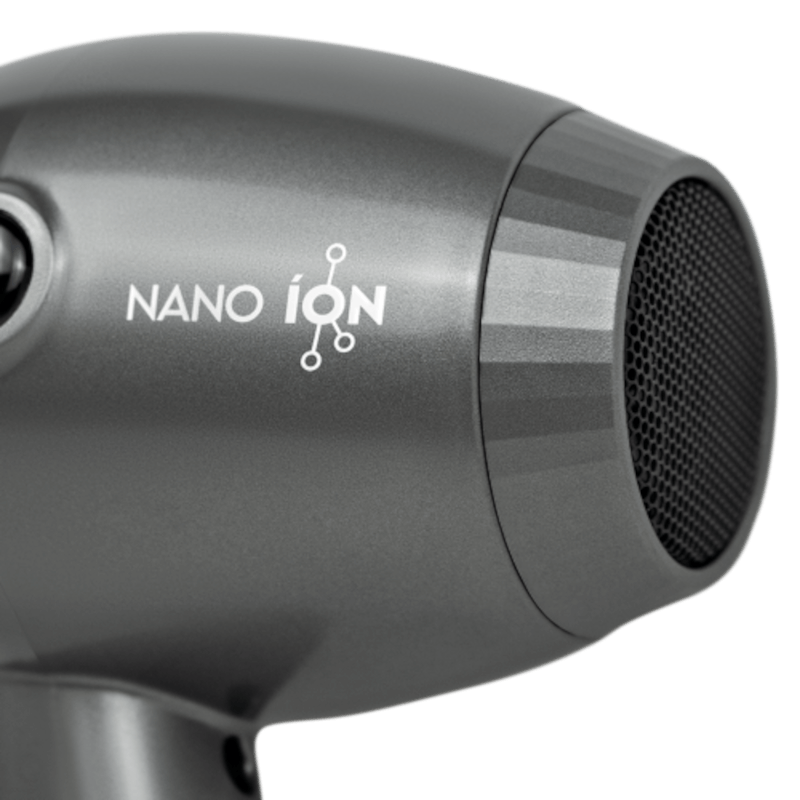 Detalhe da tecnologia Nano Íon que protege os fios e reduz o frizz durante a secagem