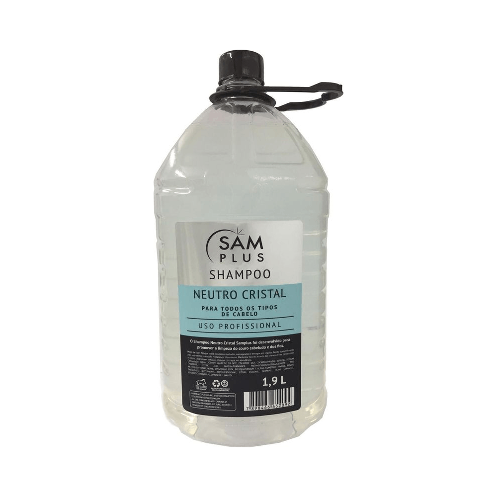 Shampoo neutro profissional Samplus em embalagem econômica de 1900ml. Limpeza profunda que preserva o pH natural dos fios, proporcionando maciez, brilho e toque suave. Ideal para uso diário e em salões que buscam rendimento sem abrir mão do cuidado.